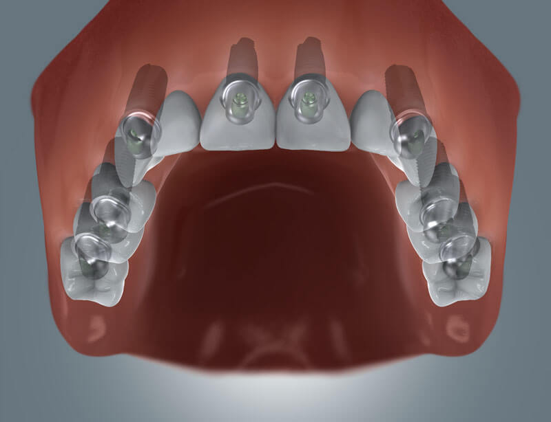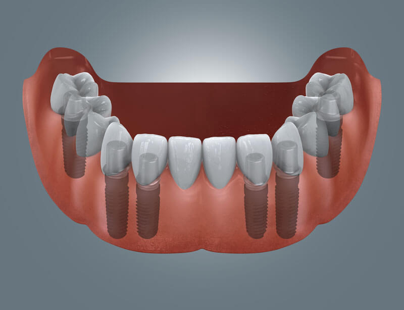 Implantate können überall da eingesetzt werden, wo Zähne fehlen: als Einzelzahnimplantat, zur Schließung größerer Lücken oder als Totalersatz.