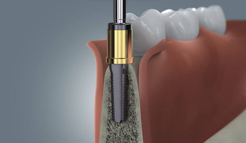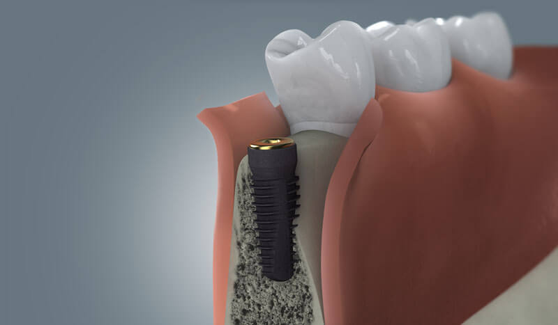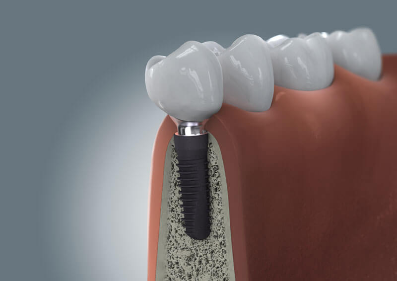 Ein Zahnimplantat übernimmt die gleiche Funktion wie die eigenen Zahnwurzeln, da es direkt mit dem Knochen verwächst es trägt Zahnersatz, z.B. Einzelkronen, Brücken oder es kann herausnehmbaren Zahnersatz sicher verankern.